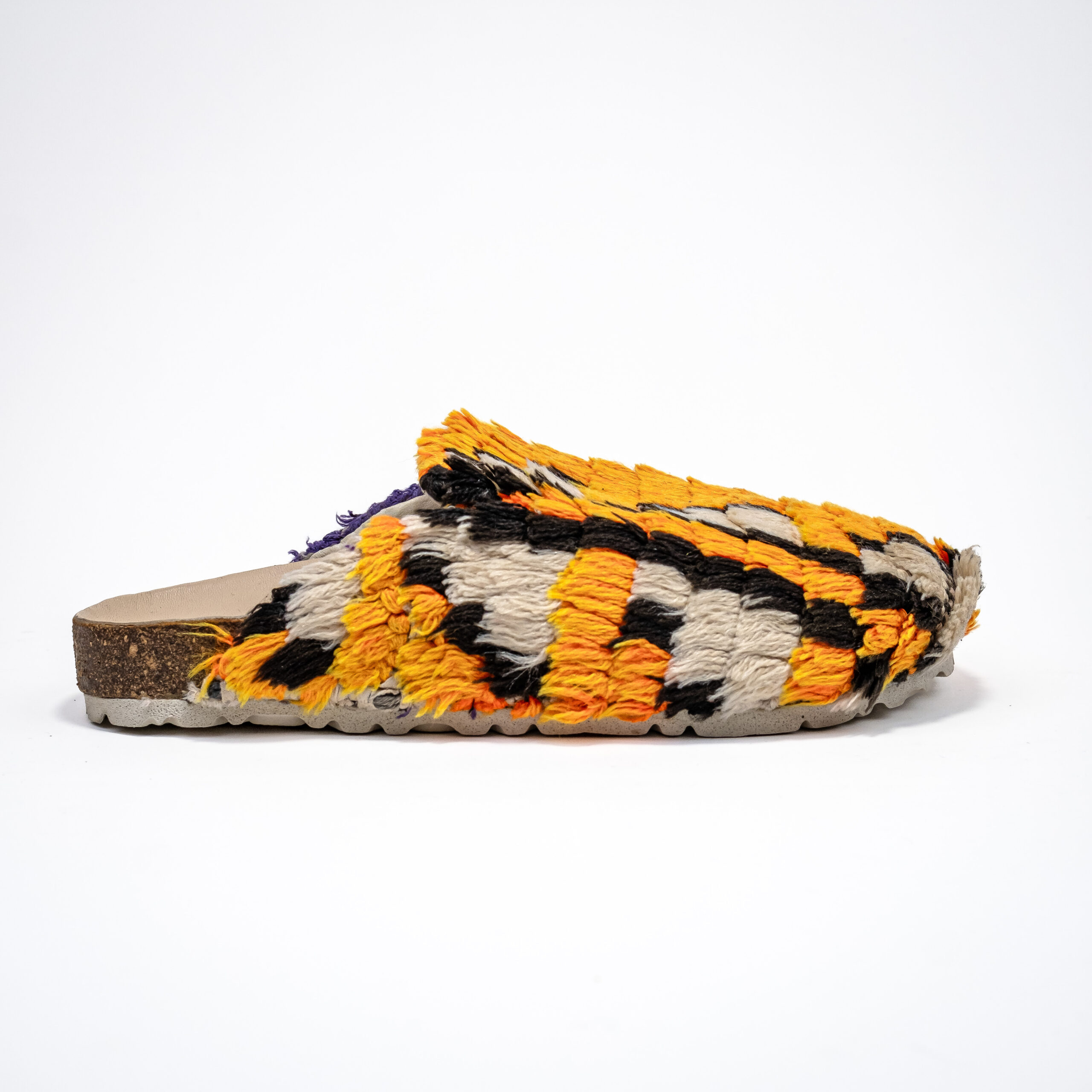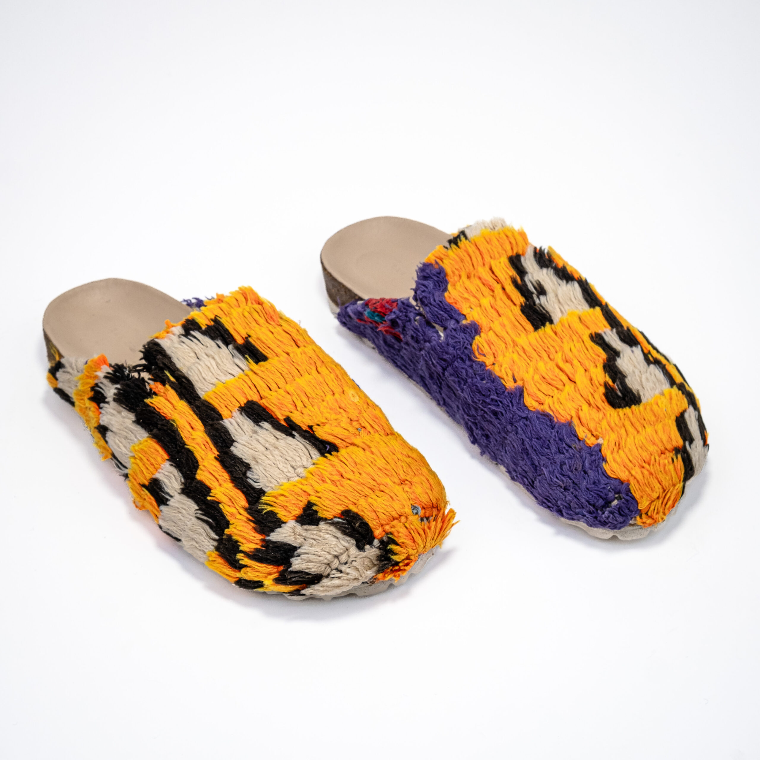 These handcrafted slippers combine elegance and authenticity with 100% artisanal craftsmanship. Made from traditional woven fabric and genuine leather, they feature a suede red strap adorned with fringes and matching tassels, adding a sophisticated touch. The padded leather insole ensures optimal comfort for daily wear. Perfect for enhancing both casual and formal outfits, these slippers reflect a harmonious blend of tradition and modernity while showcasing the expertise of local artisans.